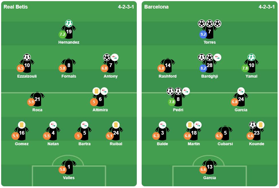 Hàng thủ Betis, từng được ca ngợi về sự chắc chắn, đã vỡ vụn trước tốc độ và sự biến ảo của Barca. Marc Bartra và các đồng đội đã trải qua một cơn ác mộng thực sự khi không thể theo kèm các mũi nhọn linh hoạt của đối phương. Những nỗ lực của Betis giúp họ có thêm 2 bàn thứ 2 ở phút 85 và 90 do công của Diego Llorente và Cucho Hernandez, nhưng mọi thứ đã quá muộn.